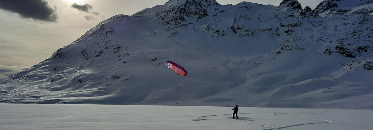 Im wunderschönen Engadin bieten wir im Januar – März Snowkitekurse auf dem Berninapass oder Silvaplanersee an. Wir übernachten auf dem Berninapass im Hotel Bernina Hospiz und sind somit direkt beim Spot.